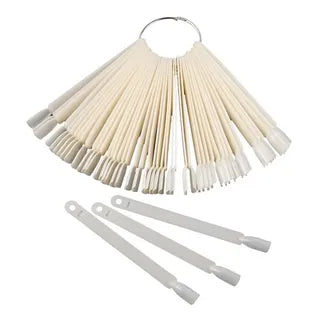 Set de 50 uñas tipo muestrario en formato punta cuadrada, ideales para mostrar diseños, colores o técnicas de aplicación. Fabricadas en material plástico transparente, son perfectas para organizar tu portafolio de manicure o practicar nuevas decoraciones.